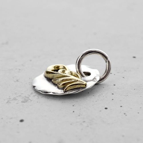 ネイティブかつアンティークな風合いを表現した唐草モチーフをセットしたメタルチャーム。シルバーとゴールドの対比が雰囲気ある仕上がり。ゴールド部分は真鍮製で作成。素材の色味を活かし、色剥がれなどが発生せず長く使える仕様。